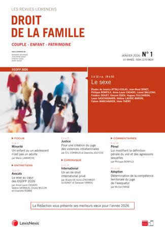 Les décisions les plus récentes dans ce domaine sont traitées à travers les rubriques suivantes : mariage, concubinage, pacte civil de solidarité, divorce, régimes matrimoniaux, successions-libéralités, adoption, filiation, autorité parentale, personnes protégées, en vous apportant l’éclairage du droit fiscal, du droit pénal et du droit international privé.